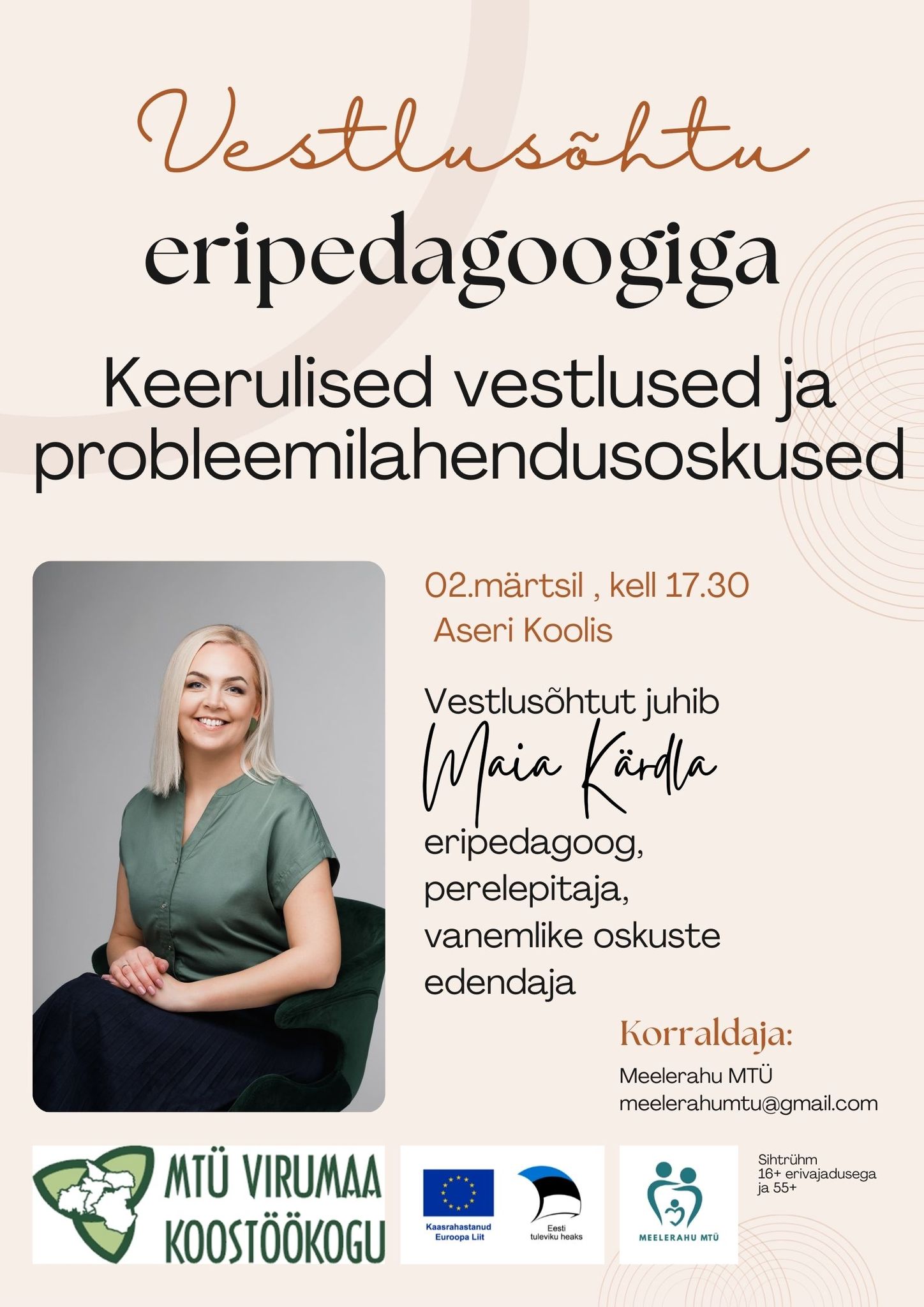 Vestlusõhtuid juhib imeline Maia Kärdla- eripedagoog, perelepitaja, vanemlike oskuste edendaja.